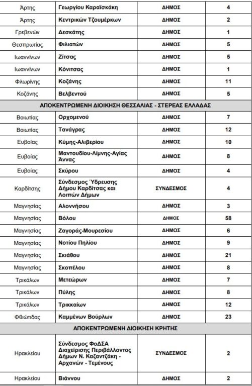Δείτε τους πίνακες με τους δήμους της Εύβοιας: