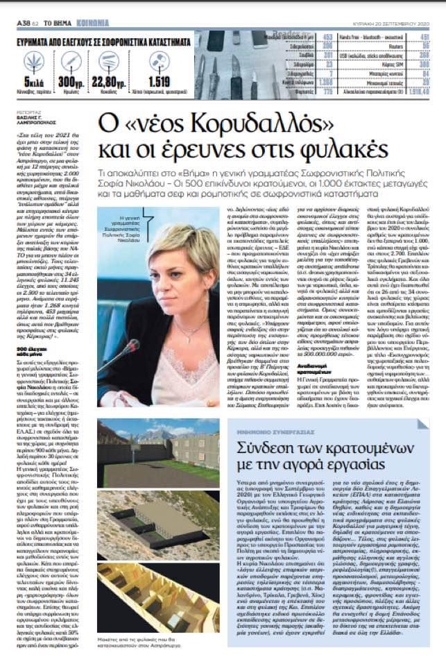 Η γενική γραμματέας Αντεγκληματικής Πολιτικής Σοφία Νικολάου με αποκλειστική της συνέντευξη στο Βήμα της Κυριακής αποκαλύπτει για τις νέες φυλακές στον Ασπρόπυργο.