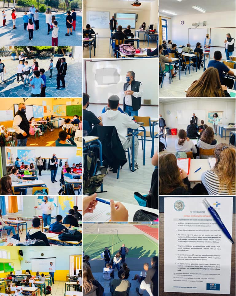 «Σήμερα μοιράσαμε στα σχολεία μας στυλό με ενσωματωμένο αντισηπτικό και ενημερωτικό υλικό για τα μέτρα προστασίας από τον κορονοϊό,» ανέφερε χαρακτηριστικά ο Λευτέρης Ραβιόλος.