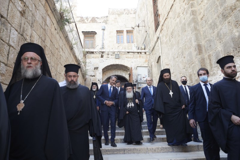 «Μια επίσκεψη στην Ιερουσαλήμ είναι χωρίς περιεχόμενο αν δεν επισκεφτεί κανείς το Πατριαρχείο κι αν δεν προσκυνήσει τον Πανάγιο Τάφο. Ευχαριστώ τον Θεό που μου δόθηκε αυτή η δυνατότητα ως Πρωθυπουργός της χώρας, στο πρώτο επίσημο ταξίδι μου -την μετά κορωνοϊού εποχή- να έρθω στην Ιερουσαλήμ», ανέφερε ο Πρωθυπουργός Κυριάκος Μητσοτάκης κατά τη συνάντησή του με τον Πατριάρχη Ἱεροσολύμων καὶ πάσης Παλαιστίνης, Θεοφίλο Γ΄, αμέσως μετά το προσκύνημά του στον Ναό της Αναστάσεως του Κυρίου.